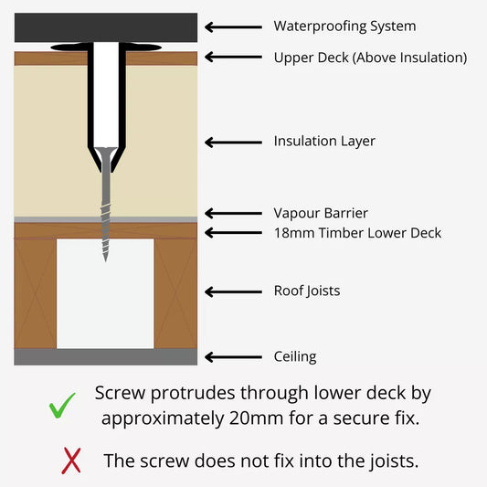 Warm Deck Insulation Fixing for 18mm TIMBER DECK (Box of 100 Pieces)