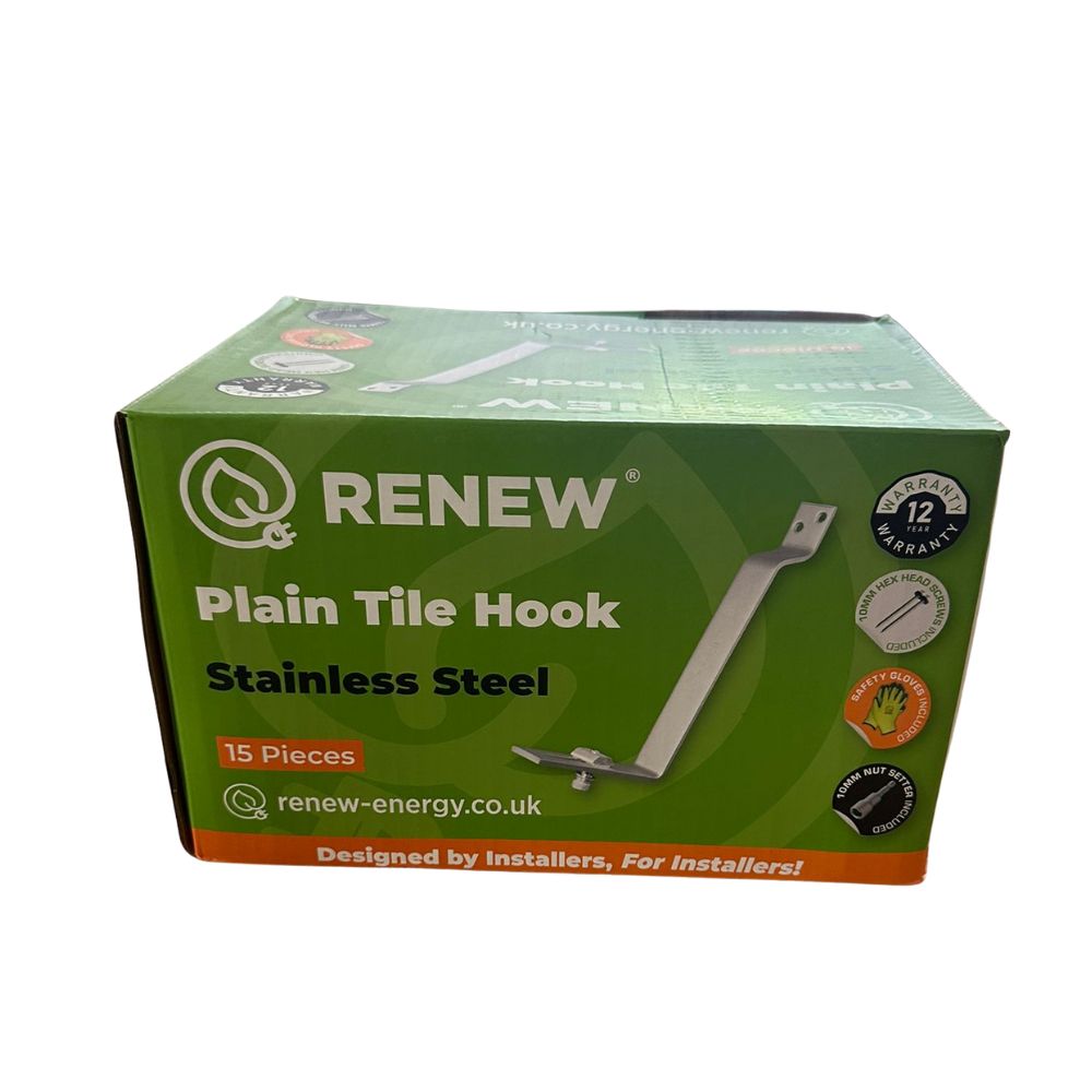 This box of 15 Fastensol Plain Tile Hooks, specifically designed for roofs with flat concrete tiles, including similar tiles like rosemary. Engineered to meet the unique demands of these roofing materials, our hooks deliver exceptional performance and longevity, making them an essential component for any solar setup.